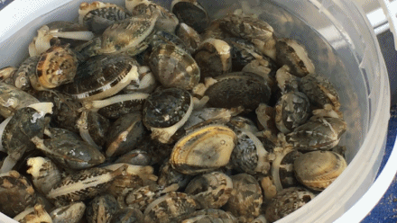 바지락을 잡기 위해서는 호미와 빈 통만 있으면 누구나 쉽게 잡을 수 있습니다.