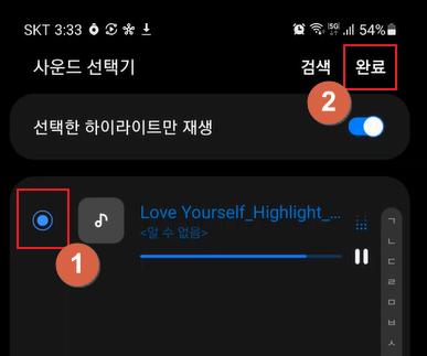 -> 노래 선택후 완료