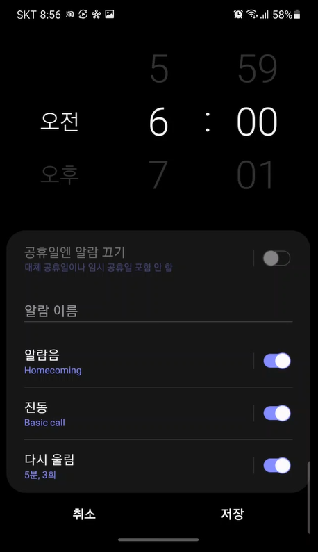 갤럭시 노트20 알림음 변경으로 기상 벨소리를 내가 좋와하는 노래로 변경 가능합니다.