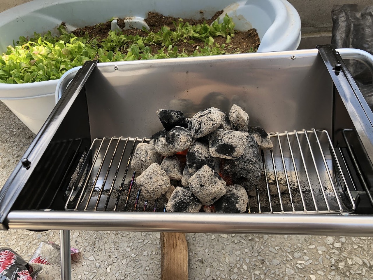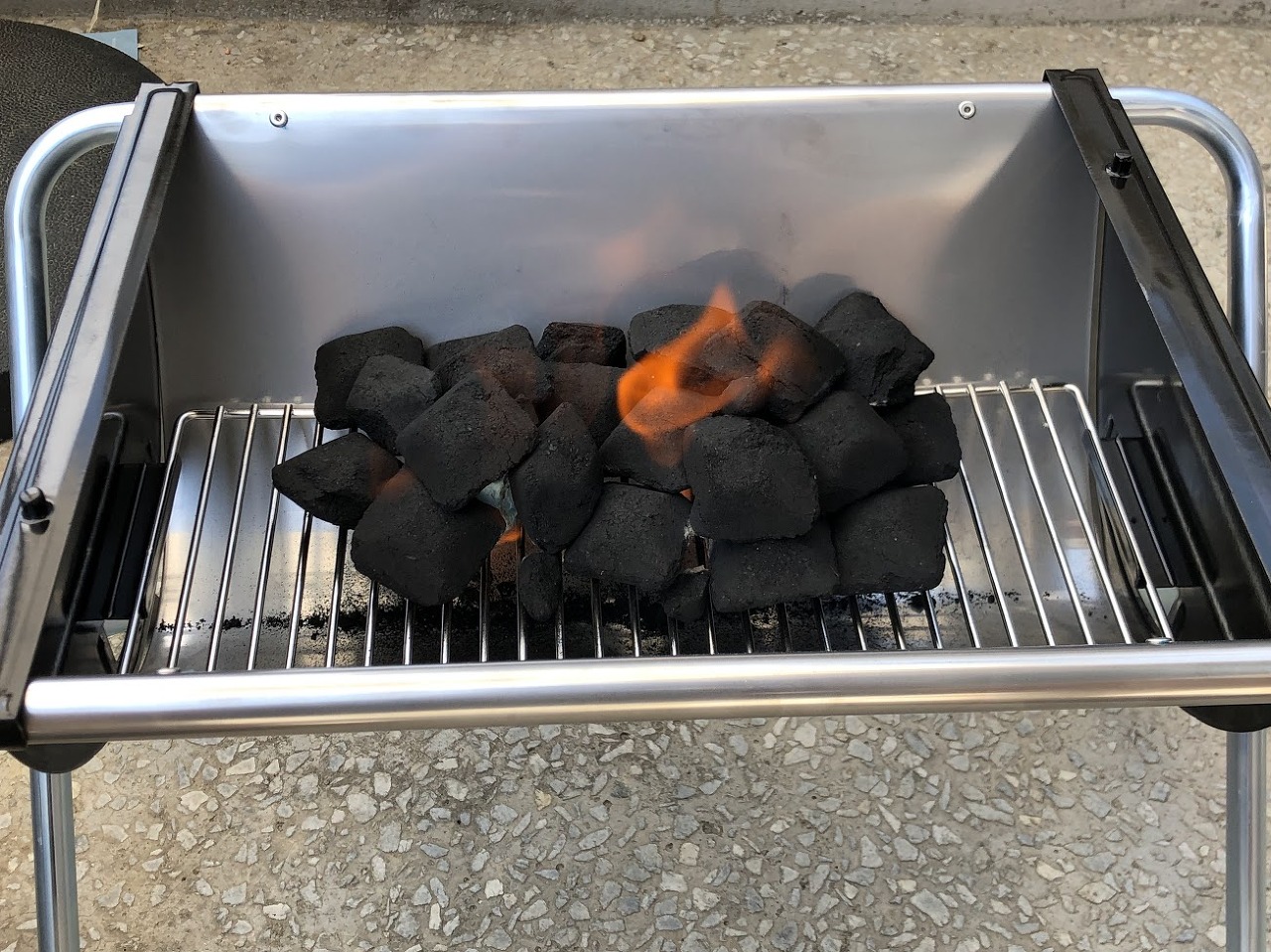 차콜스타터가 있지만 귀찮으니 착화제 하나 펴서 붙였습니다.