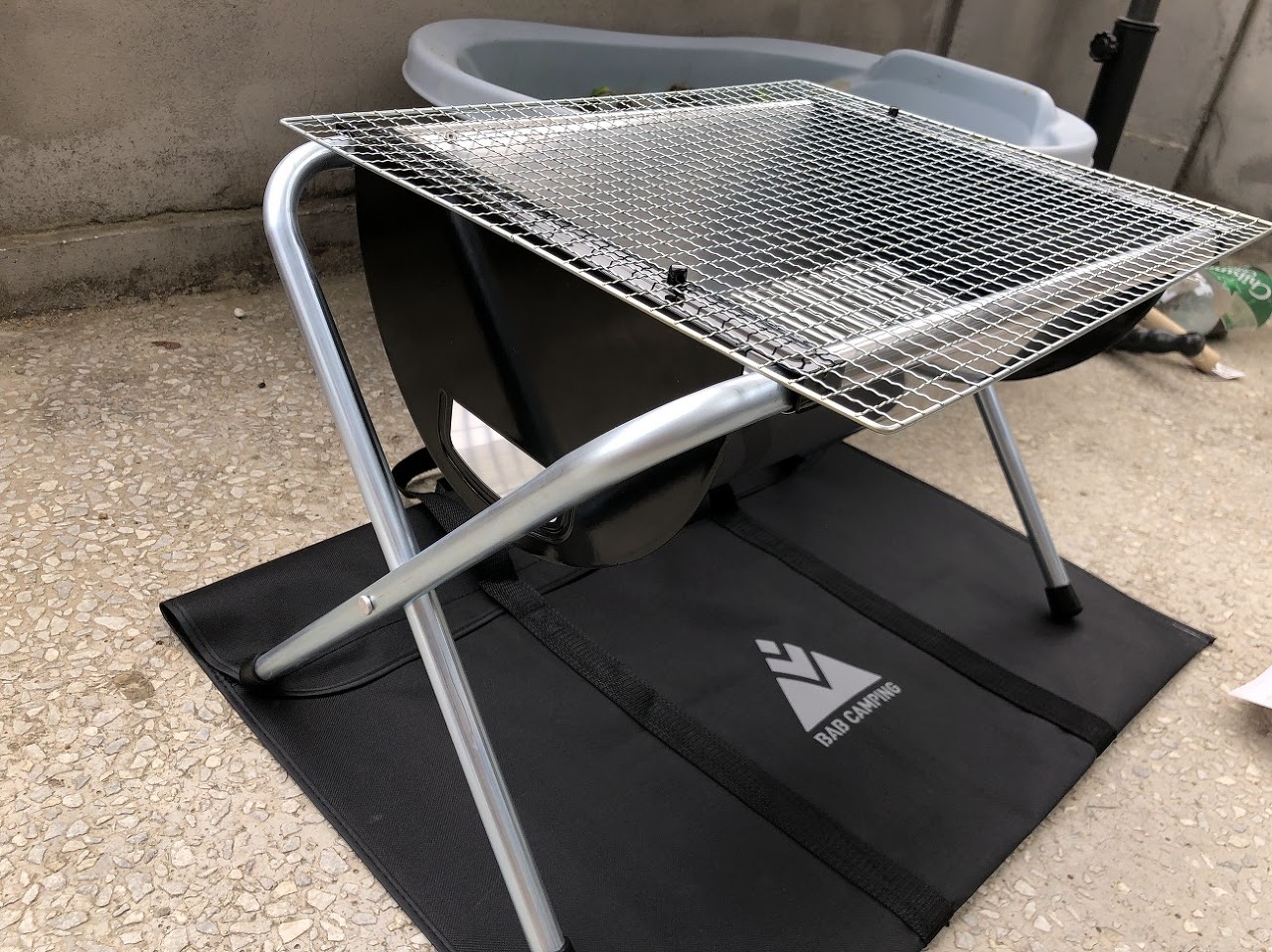 캠핑 가서 화로대 정리하는 시간을 아끼기 위한 일회용 석쇠를 사용하는 화로대