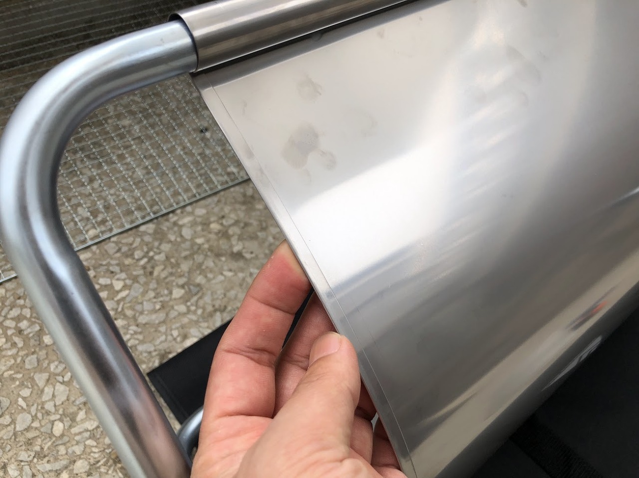 휘어지는 스테인리스 본체의 모서리 마감은 한번 접어서 전혀 날카롭지 않아서 좋네요.