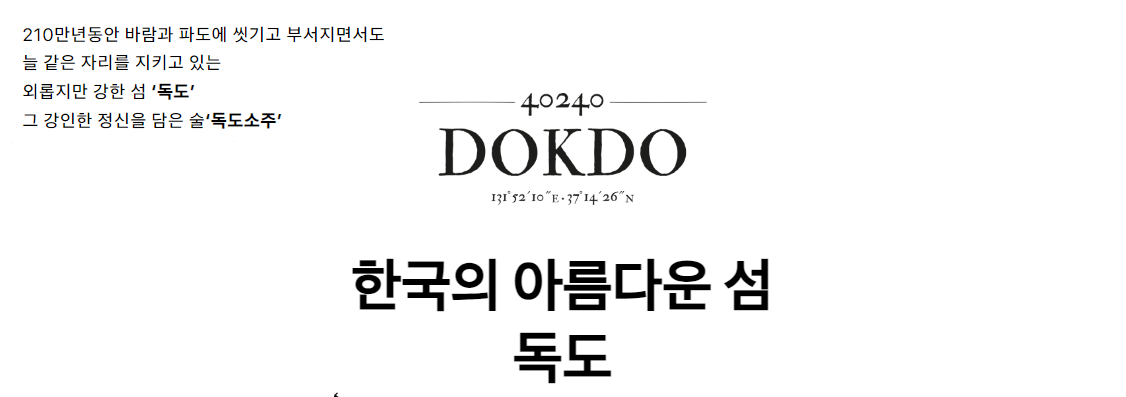 독도는 한반도 동해안에 위치한 섬으로서, 역사적·정치적 배경을 갖고 있어서인지 독도는 한국인들에게 매우 소중한 곳으로 여겨지며, 이를 상징하는 것으로 독도소주가 유명합니다.