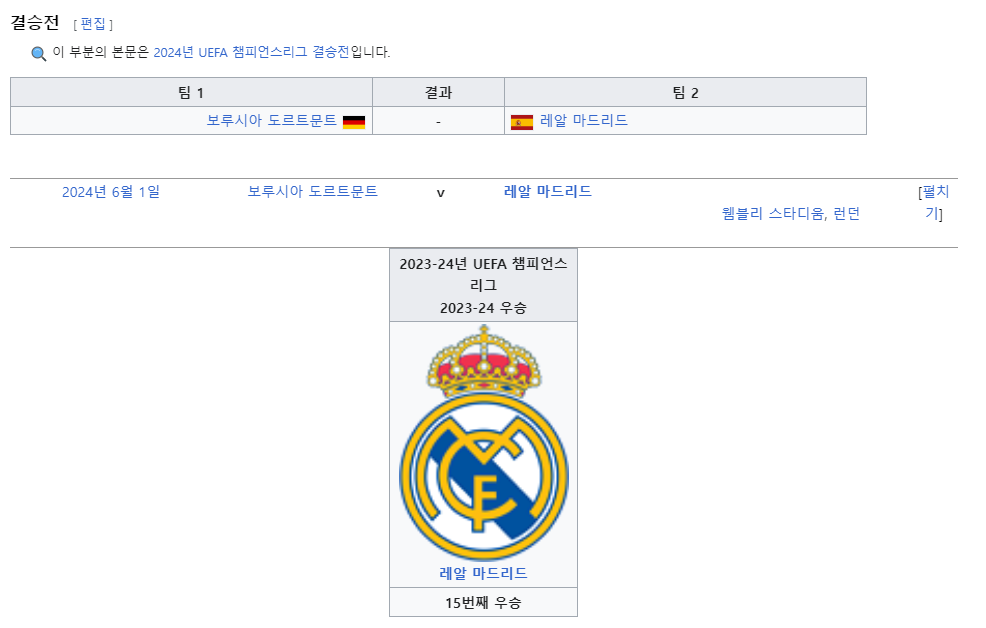 챔피언스리그 우승 예상팀은 아직 경기 전인데도 불구하고 위키백과에 누군가 우승팀을 벌써 만들어 놨습니다.