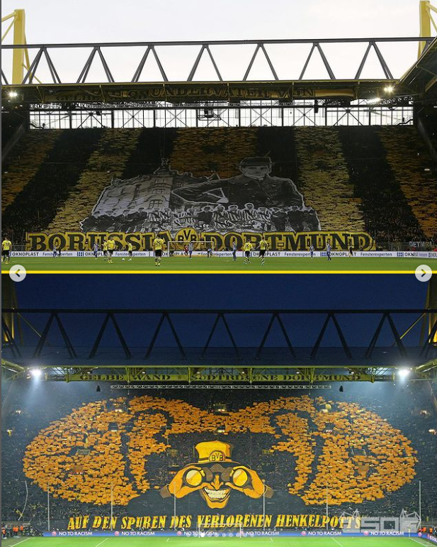 도르트문트의 홈구장인 지그날 이두나 파크(구 베스트팔렌슈타디온)는 유럽에서 가장 열정적인 분위기와 카드 섹션을 자랑하는 경기장 중 하나로 유명합니다.