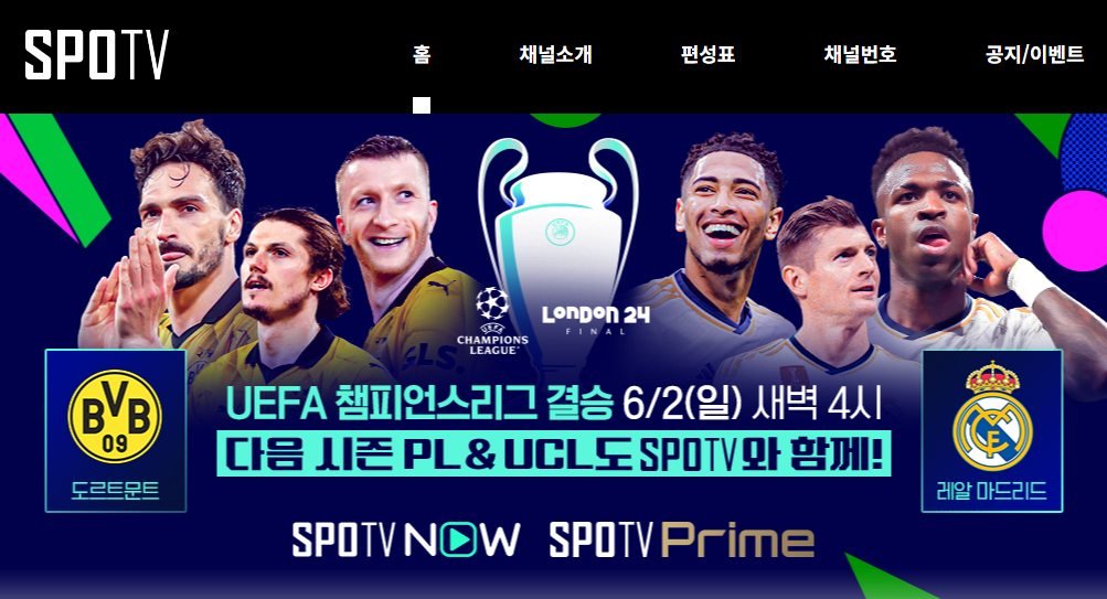 UEFA챔피언스리그 결승전 라이브 방송은 SPOTV에서 가능합니다.