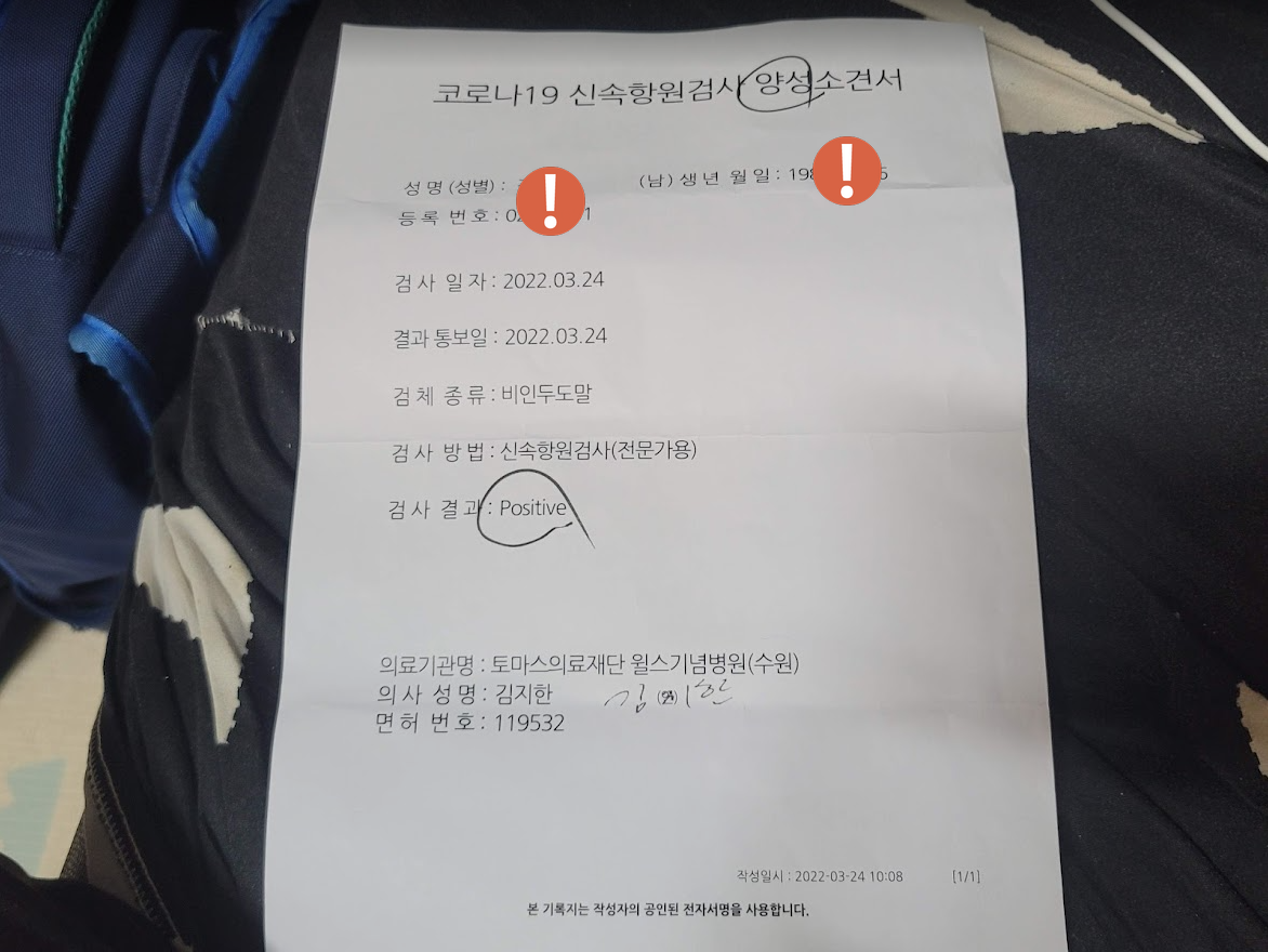 병원 도착후 1시간도 안걸려서 신속하게 신속항원검사로 코로나 검사를 받았습니다.