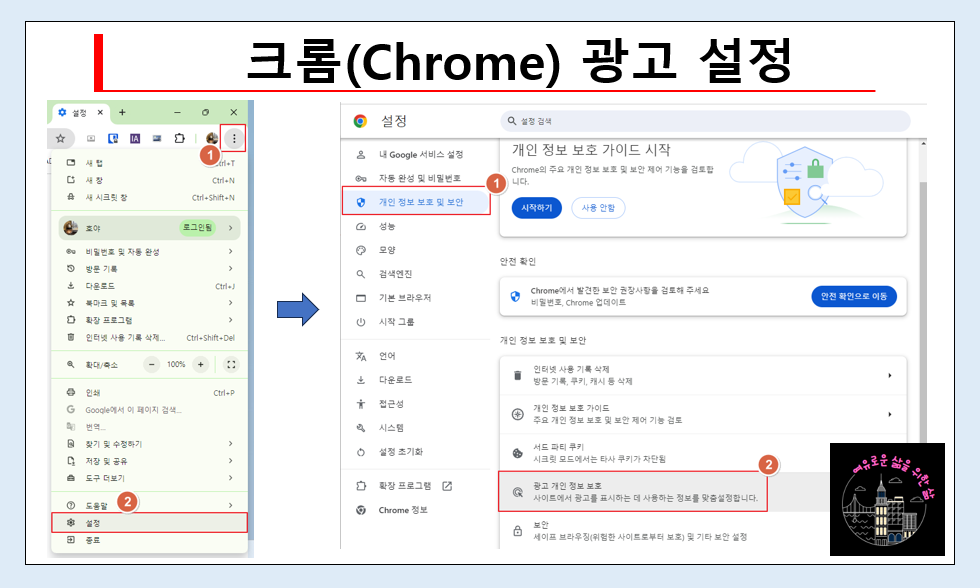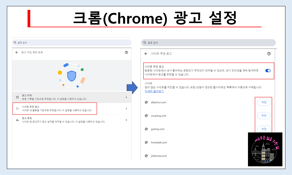 4. 광고 개인 정보 보호 -> 사이트 추천 광고 -> 차단