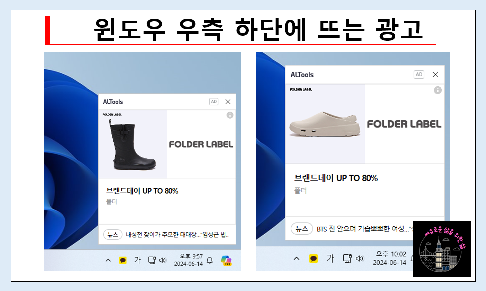 윈도우 우측 하단에 자동으로 뜨는 AD 광고