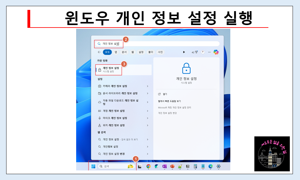 - 윈도우 개인 정보 및 보안 -> 일반 실행