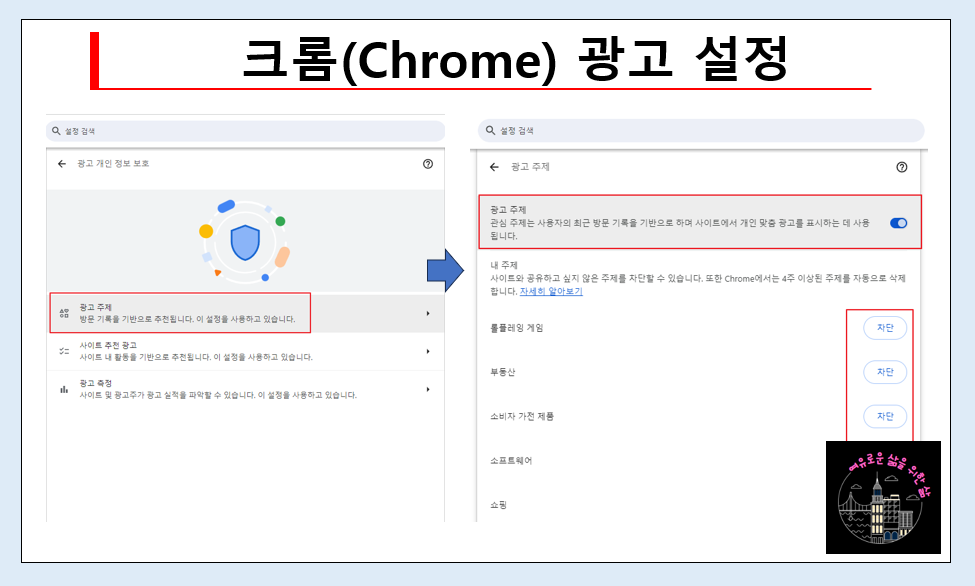 3. 광고 개인 정보 보호 -> 광고 주제 -> 차단