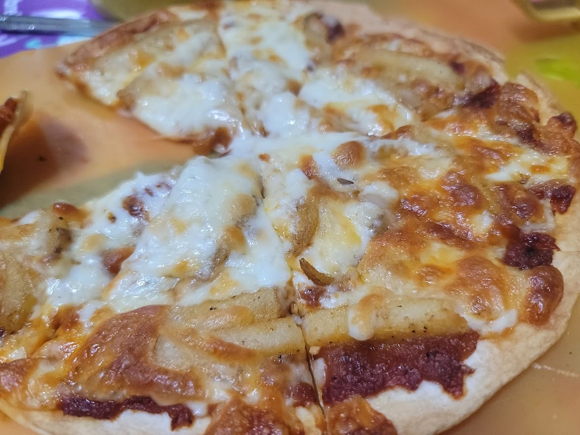 콤비네이션 피자와 같이 야채, 햄 등 토핑이 많은 것을 원하실 때는 퀘사디아를 만들어 먹는 게 좋지 않나 생각됩니다.