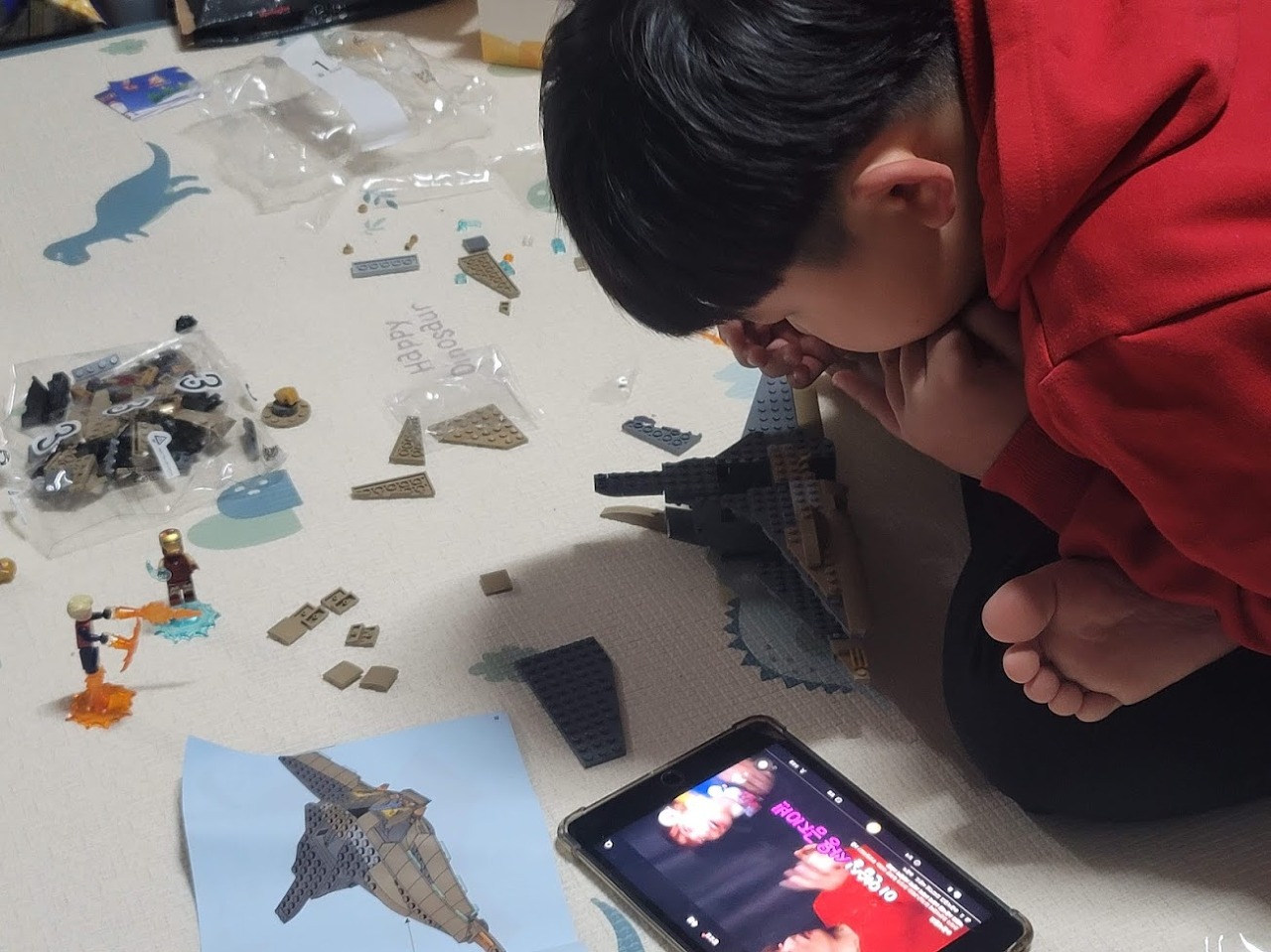 책상에서 레고 조립하면 좋겠는데, 아직 책상 보다는 바닥에서 하는게 좋은듯 하네요.