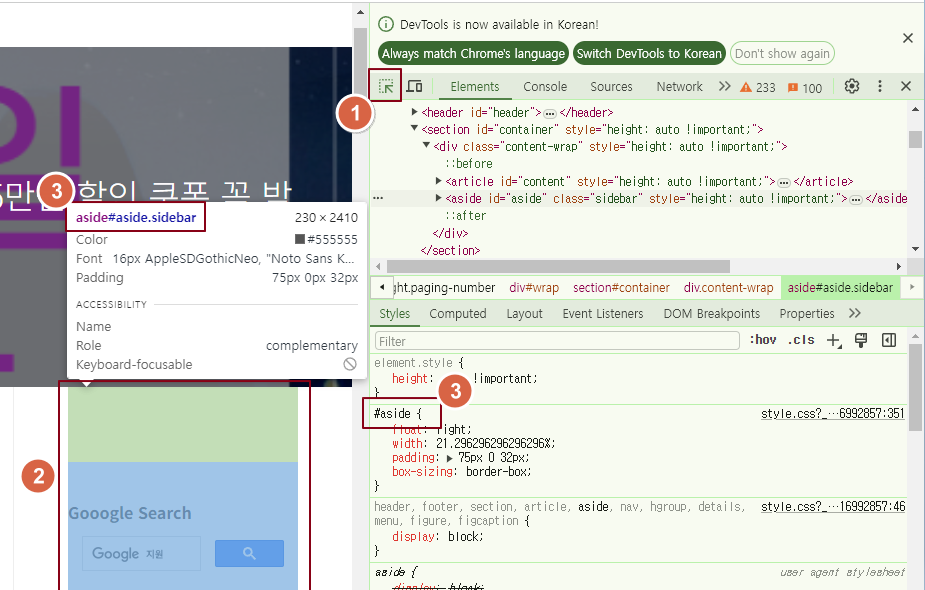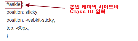 ③ 코드에 나온 사이드바 Class ID 확인 (제 건 #aside 이네요)