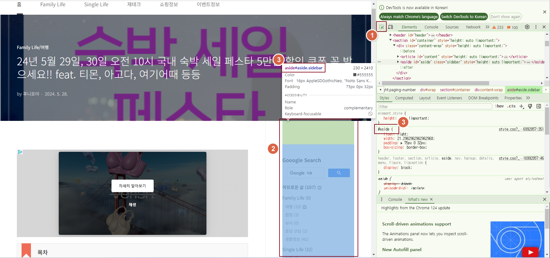 1. 티스토리 사이드바 Class ID 확인하기 (개발자 모드(F12) 활용)