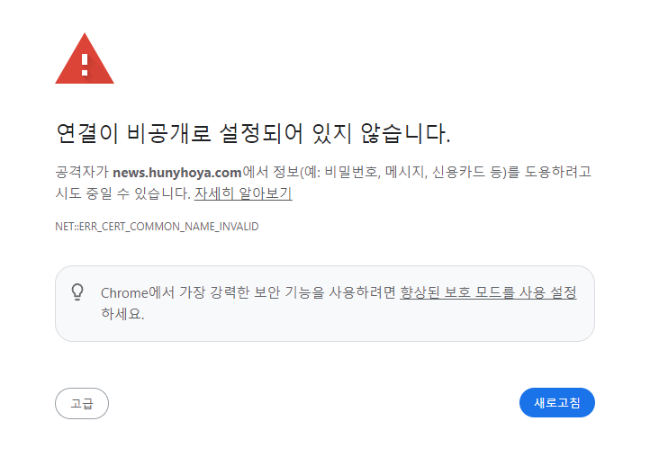 허나 실제 접속은 여전히 위와 같은 오류 메세지를 보내고 있습니다.