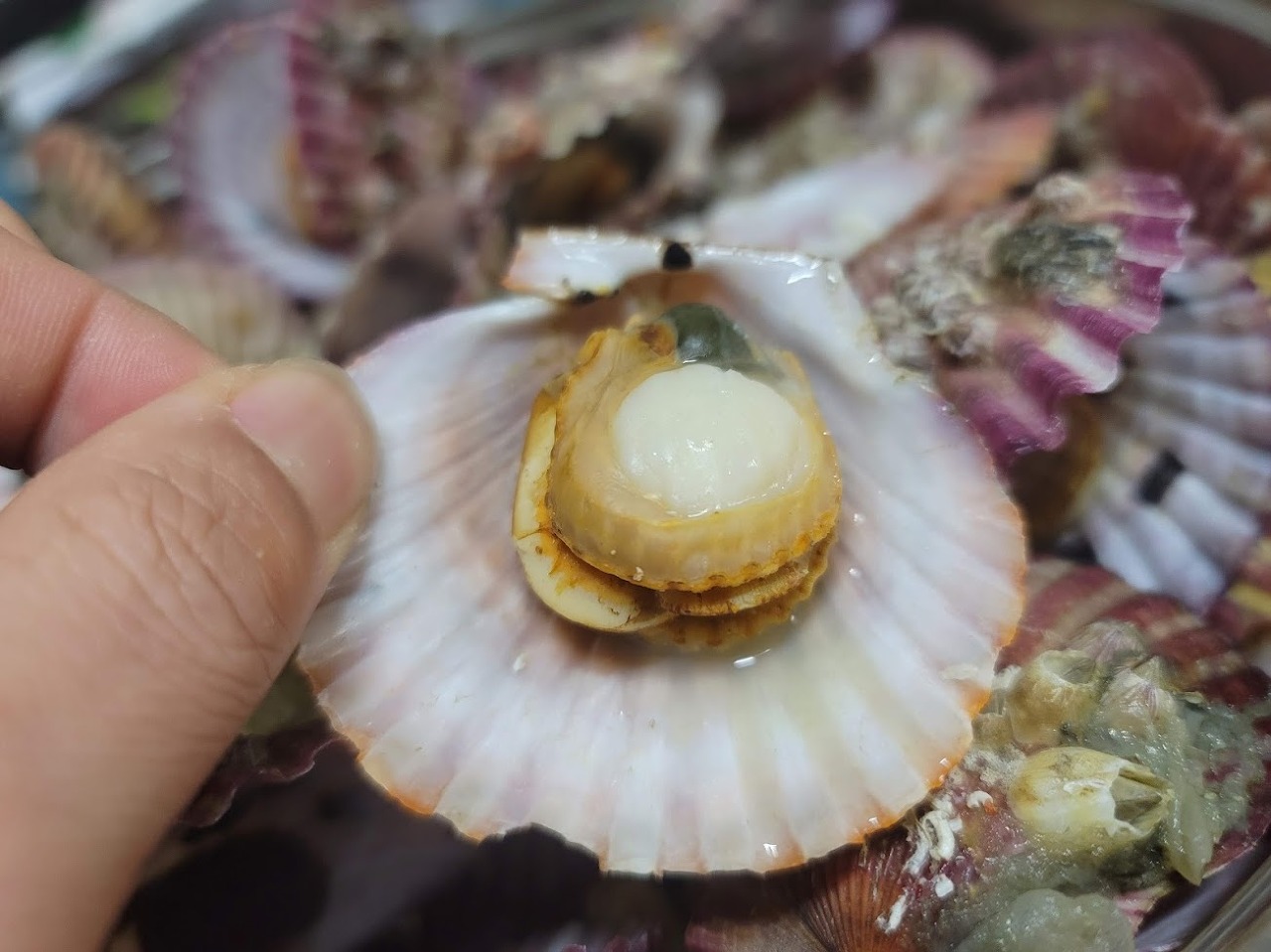 뚜껑을 뚫고 나오는 저 힘찬 홍가리비들!!