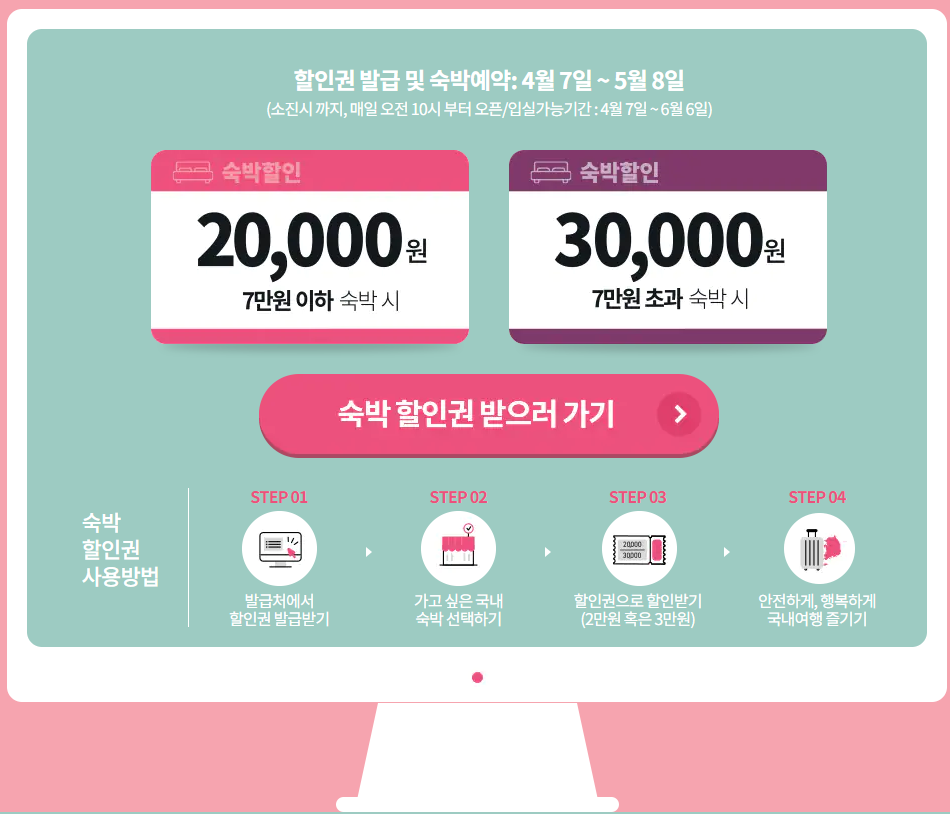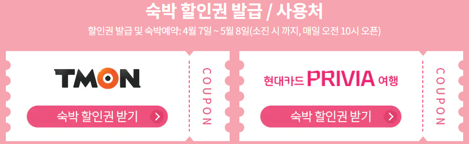 숙박 할인권 발급 및 숙박예약 : 4월 7일 ~ 5월8일