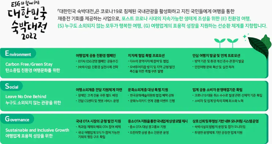 ESG와 함께하는 대한민국 숙박대전 2022이라는 슬로건을 가지고 있습니다.