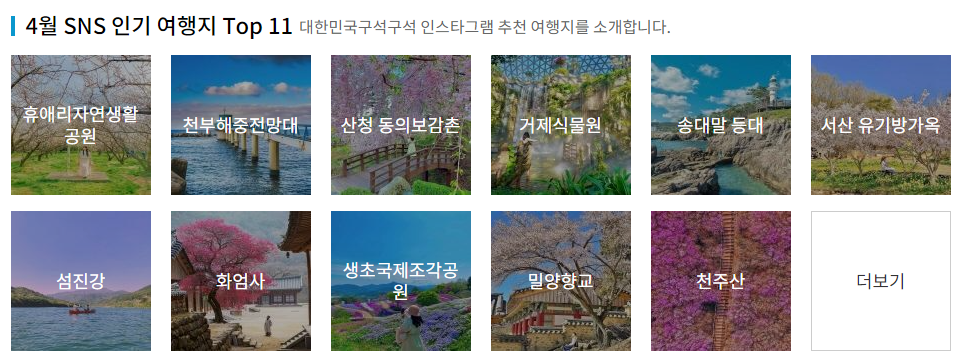 4월 SNS 인기 여행지 Top 11