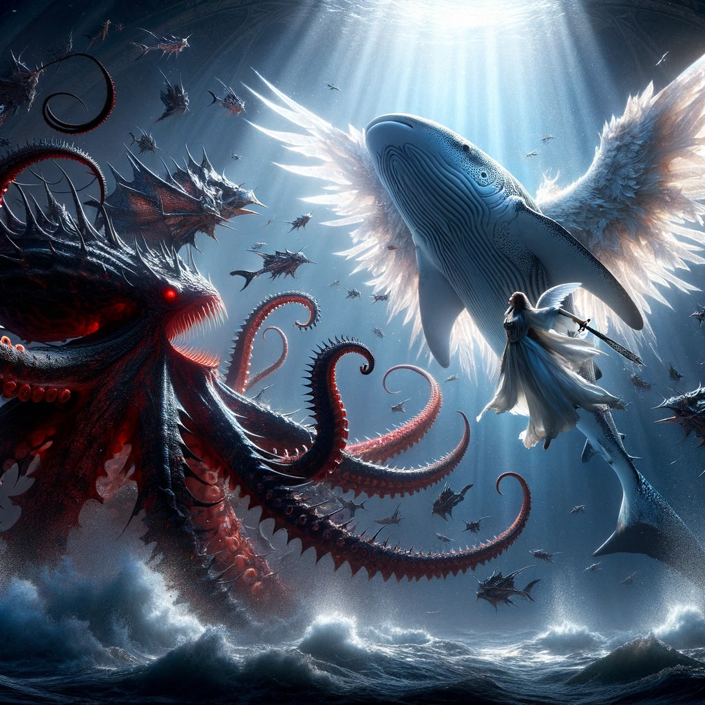 ChatGPT로 그림 동화 만들기 문어 악마 와 고래상어천사